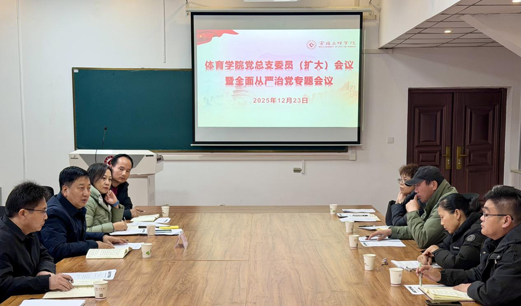 12月23日下午,体育学院在学院101会议室召开党总支委员会(扩大)会议暨全面从严治党专题会议。副校长冯飞龙参加会议并讲话,会议由体育学院党总支书记赵艳主持。